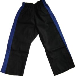 Black and Blue Trousers Made in Polycotton (double stitched for strength) Suitable for all beginners and basic classes Available in sizes 00000/90cm 0000/100cm 000/110cm 00/120cm 0/130cm 1/140cm 2/150cm 3/160cm 4/170cm 5/180cm 6/190cm 7/200cm